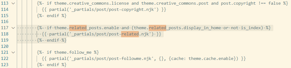 | {%- if theme.related_posts.enable and (theme.related_posts.display_in_home or not is_index) %} {{ partial('_partials/post/post-related.njk') }} {%- endif %}