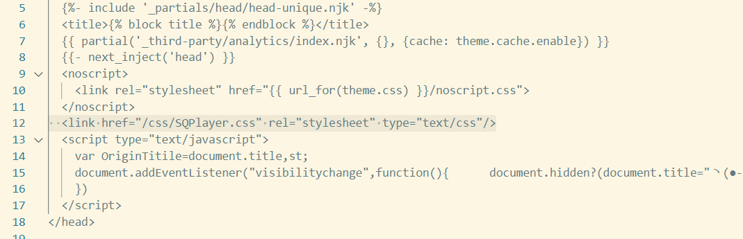 修改\node_modules\hexo-theme-next\layout\_layout.njk文件,添加<link href="SQPlayer.css" rel="stylesheet" type="text/css"/>