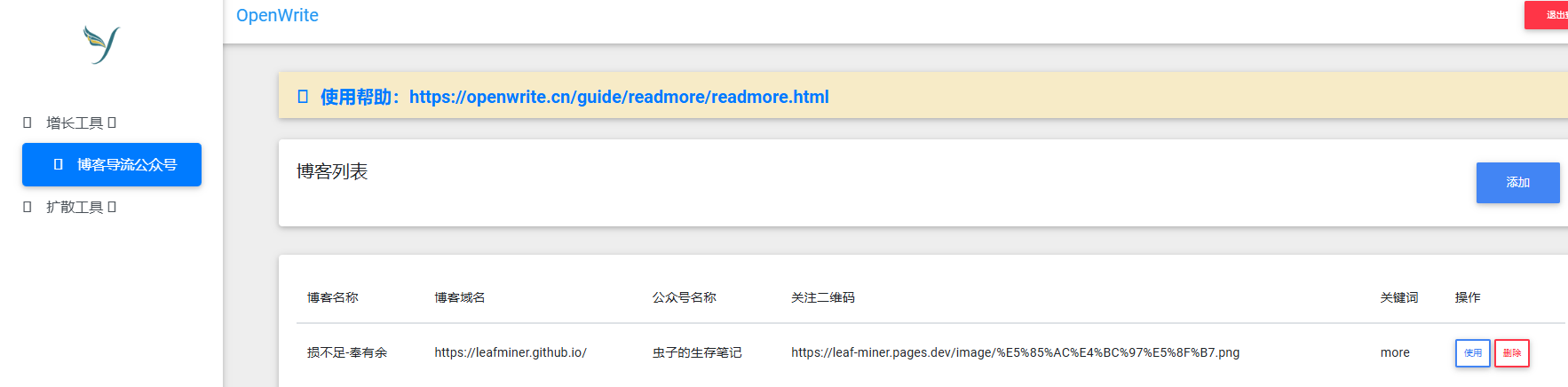 通过添加博客列表,根据提示填写你的信息,生成对应的使用指南。如下: