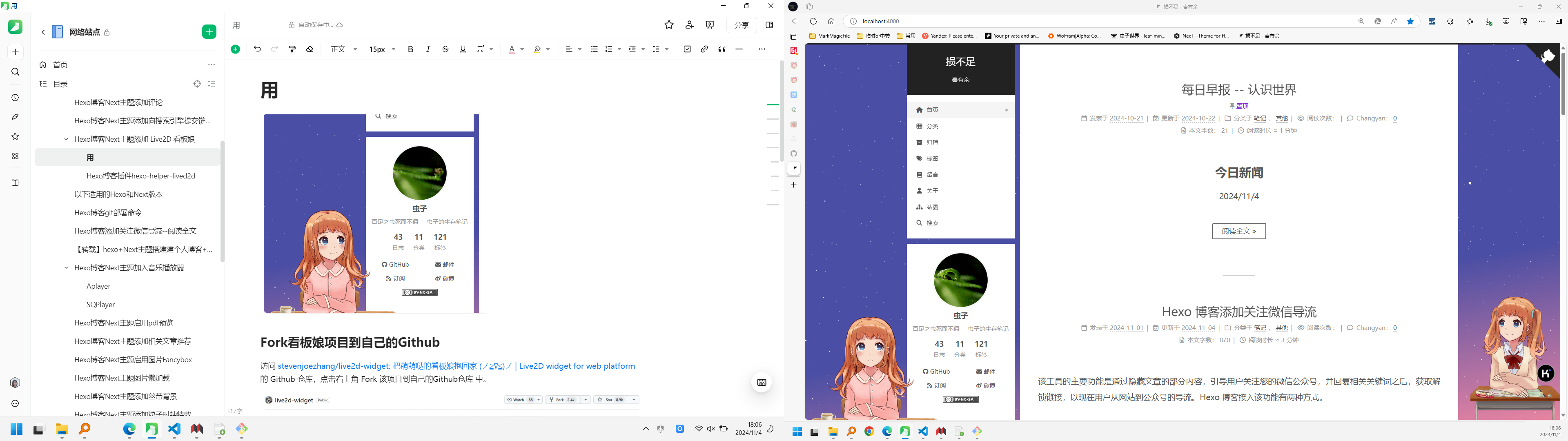 访问 stevenjoezhang/live2d-widget: 把萌萌哒的看板娘抱回家 (ノ≧∇≦)ノ | Live2D widget for web platform的 Github 仓库,点击右上角 Fork 该项目到自己的Github仓库 中。