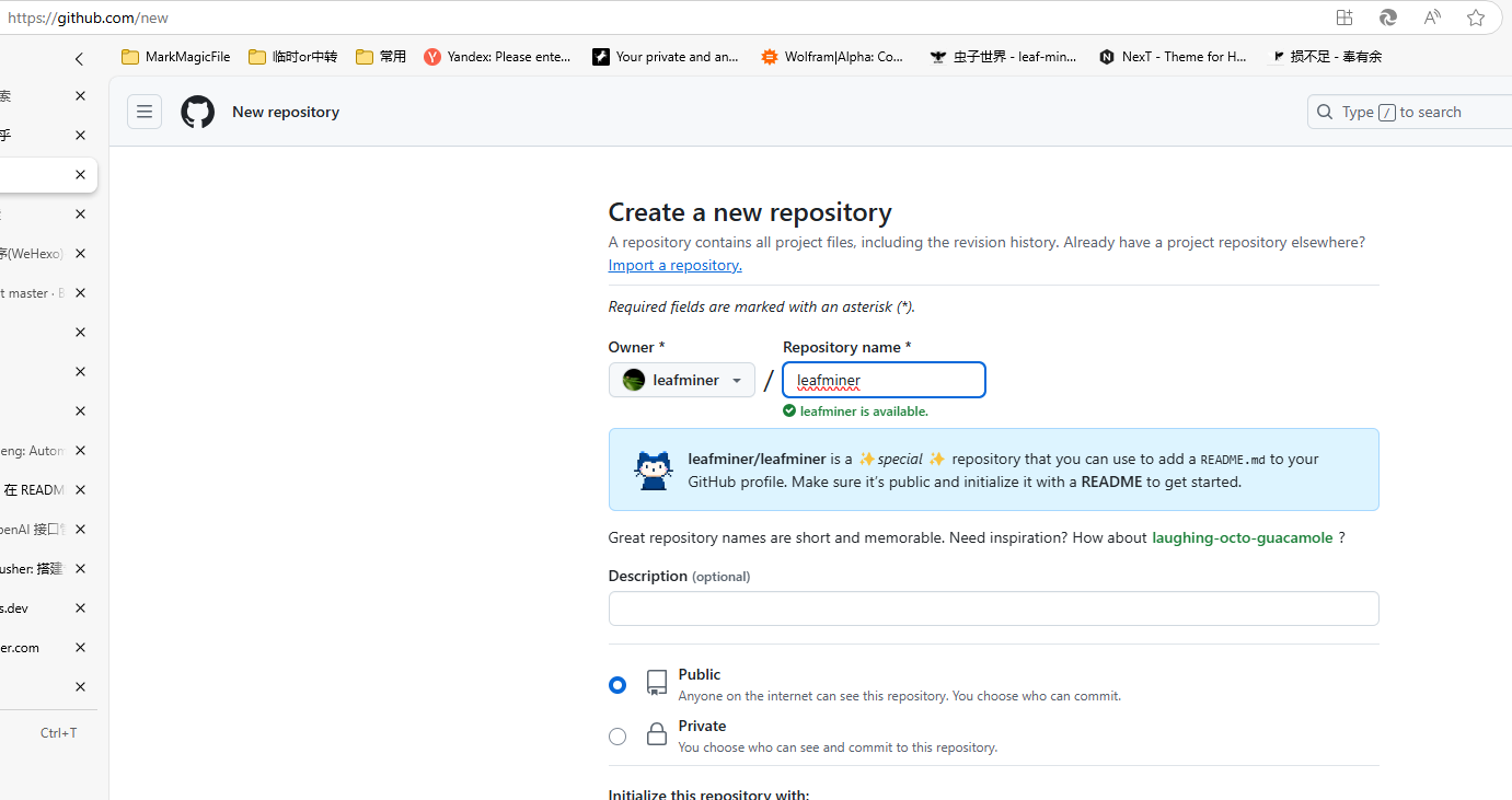 leafminer/leafminer is a ✨special ✨ repository that you can use to add a README.md to your GitHub profile. Make sure it’s public and initialize it with a README to get started.