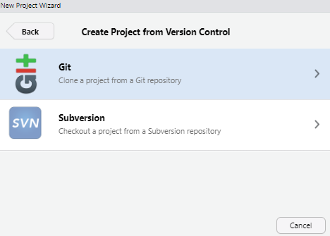 File > New Project > Version Control > Git Repository URL粘贴上一步复制的仓库链接。